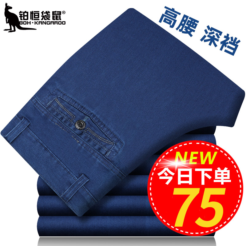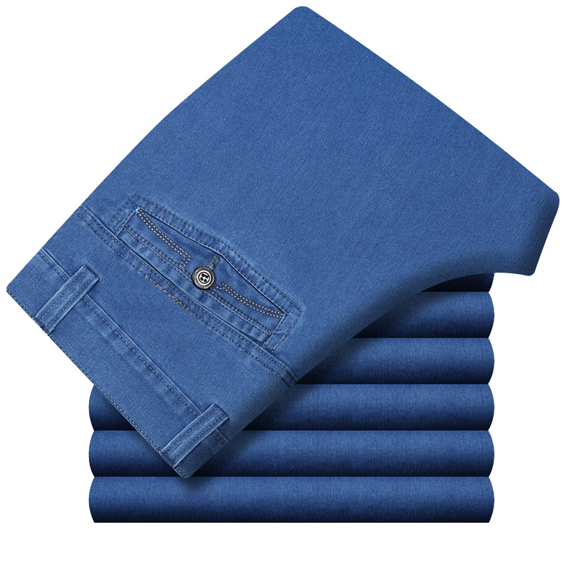 牛仔裤男弹力中年高腰宽松直筒春夏薄款深档中老年爸爸装休闲裤子