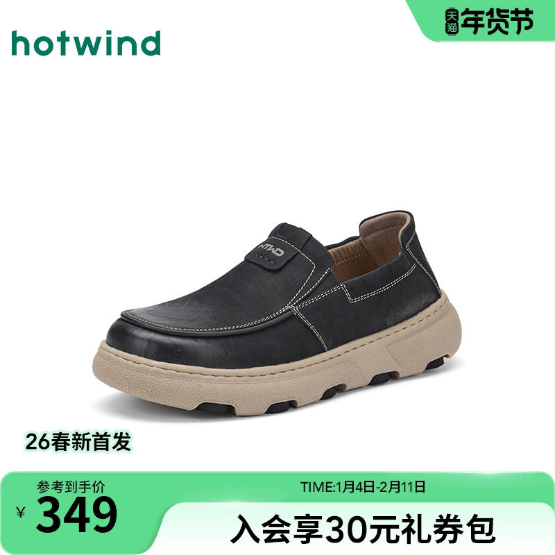 热风男鞋2026年春季新款男士时尚休闲鞋增高百搭商务舒适皮鞋子