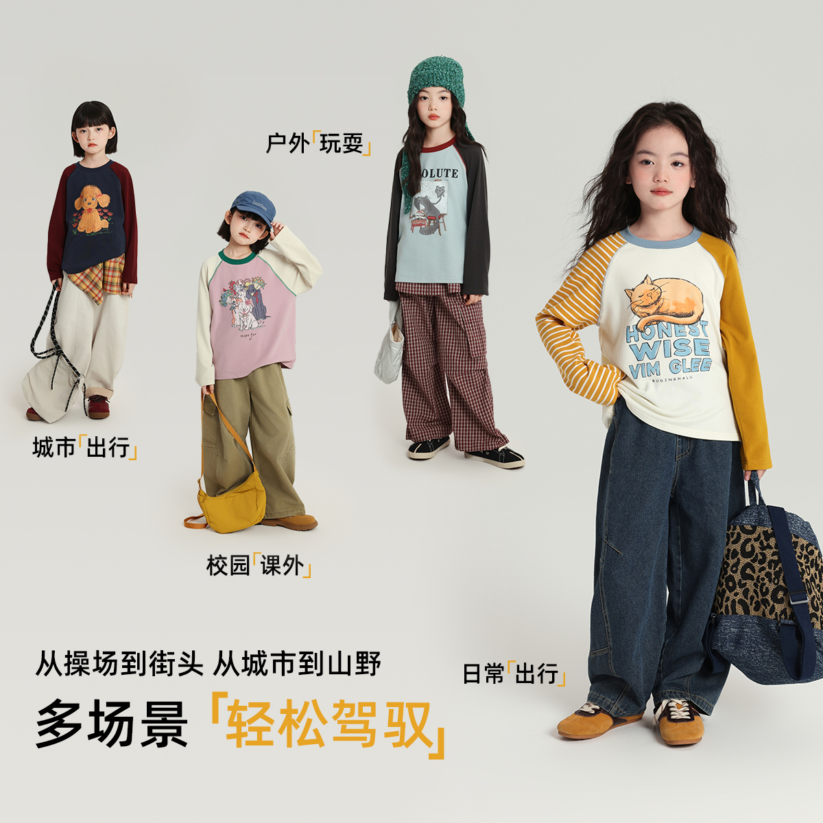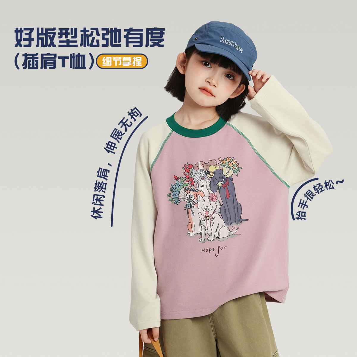 布丁哈鲁春秋童装儿童卡通上衣2025春秋新款女童洋气撞色长袖T恤