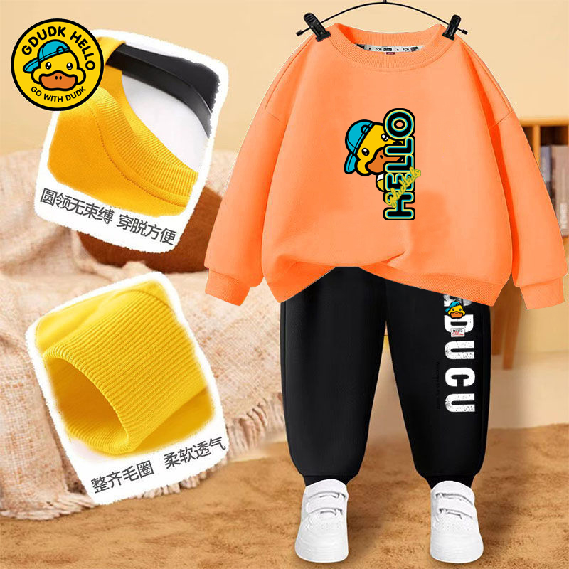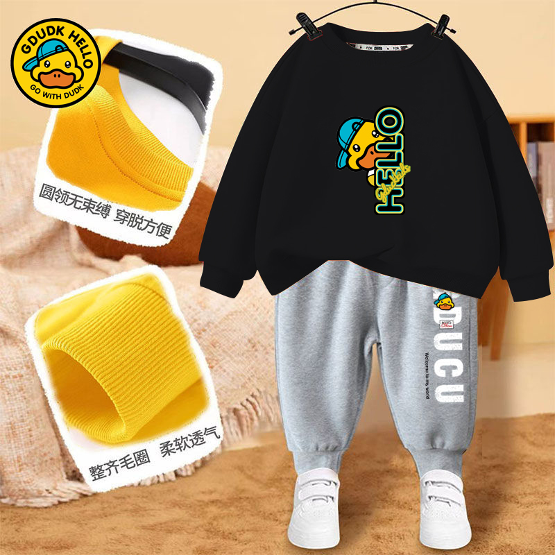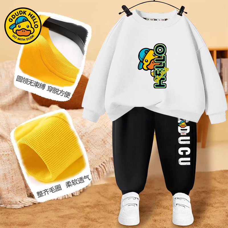 小黄鸭儿童长袖套装2025春秋新款男女童时髦洋气卫衣卫裤两件套潮