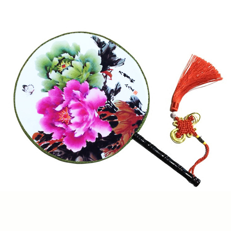 真丝女扇双面宫扇折扇女式扇子跳舞团扇复古汉服舞蹈牡丹扇杨贵妃