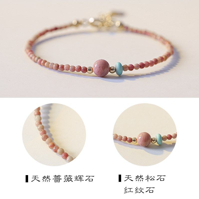 普陀山招桃花天然红纹石手链女生水晶小众精致旺姻缘粉色手串礼物