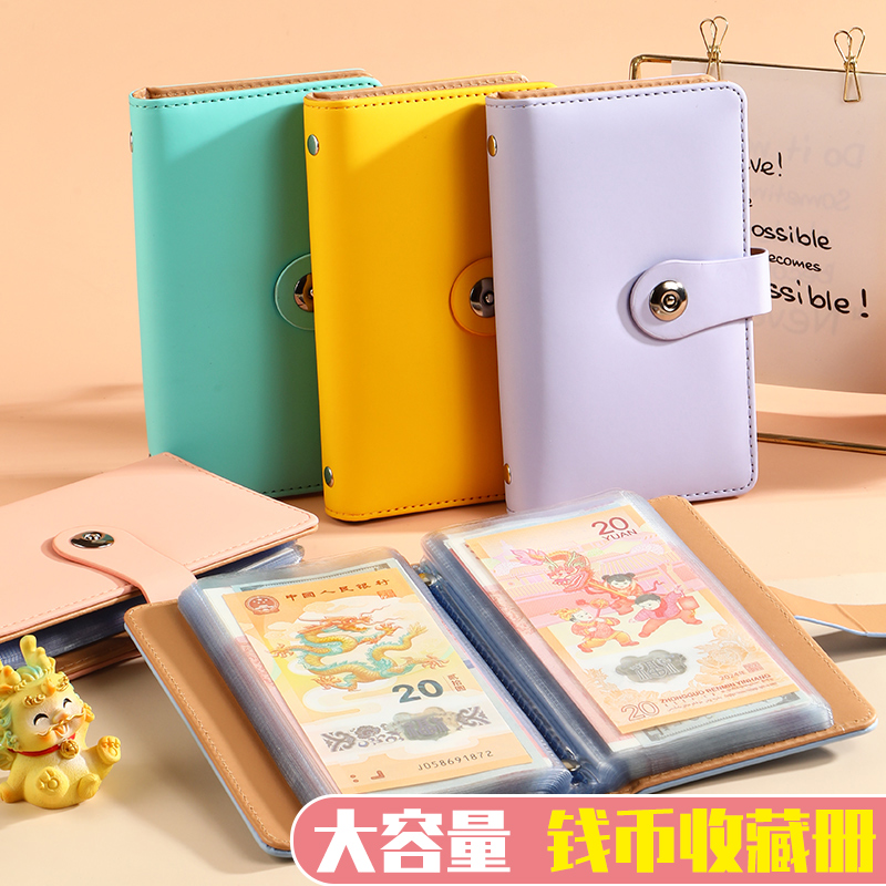 龙年龙钞现金收纳册纪念钞收藏册子新款纸钞纪念币人民币保护套存钱本纸币钱币收集夹纸币袋纸钞票空册新皮革