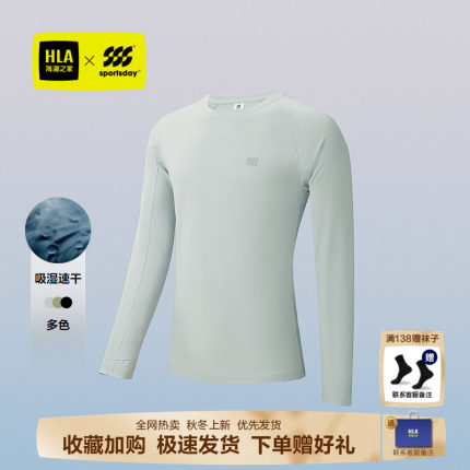 HLA/海澜之家综训运动sportsday速干跑步长袖T恤25春夏新上衣男装