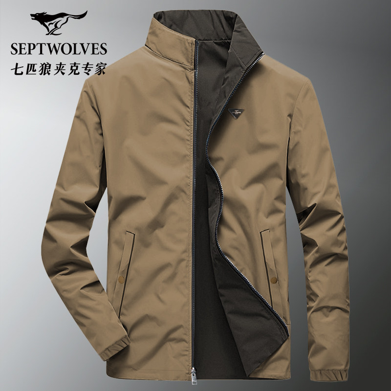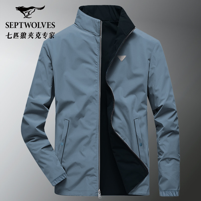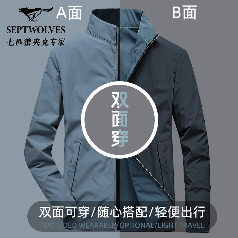 七匹狼夹克男装外套秋冬新款商务休闲梭织立领双面穿单茄克衫衣服