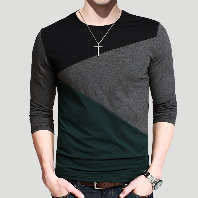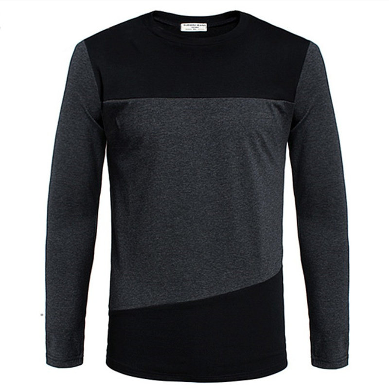 纯棉长袖T恤男复古风潮流秋装加大码个性款年轻人拼接撞色体恤衫
