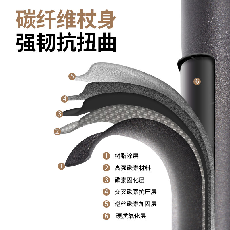 牧高笛碳纤维登山杖碳素超轻折叠拐杖男女爬山装备专业户外徒步杖