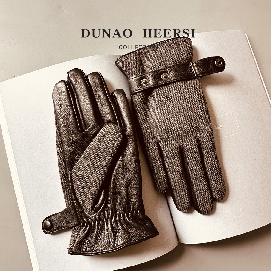 英伦欧版高端真鹿皮真皮手套男冬季羊毛手背加绒保暖骑车开车送礼