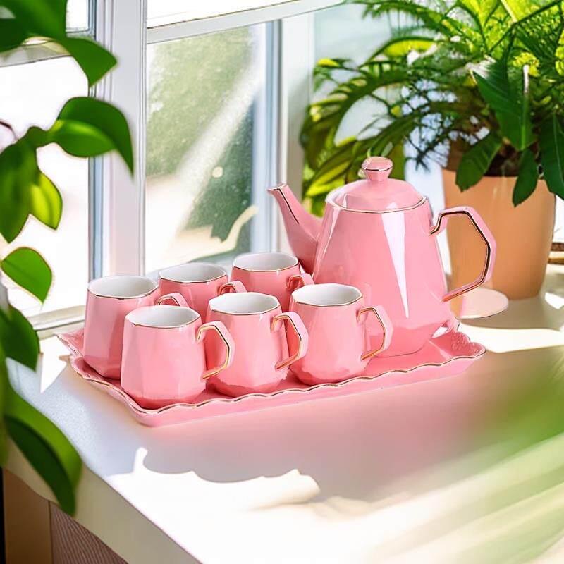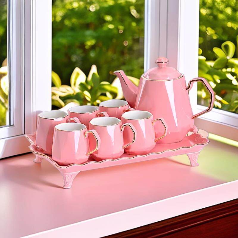 北欧轻奢水具乔迁茶具整套家用客厅水杯杯子陶瓷杯具套装结婚礼品
