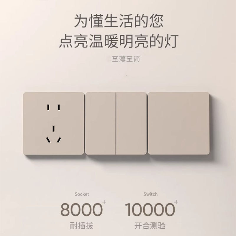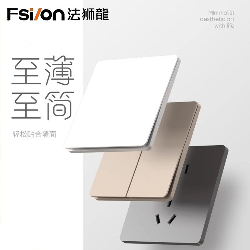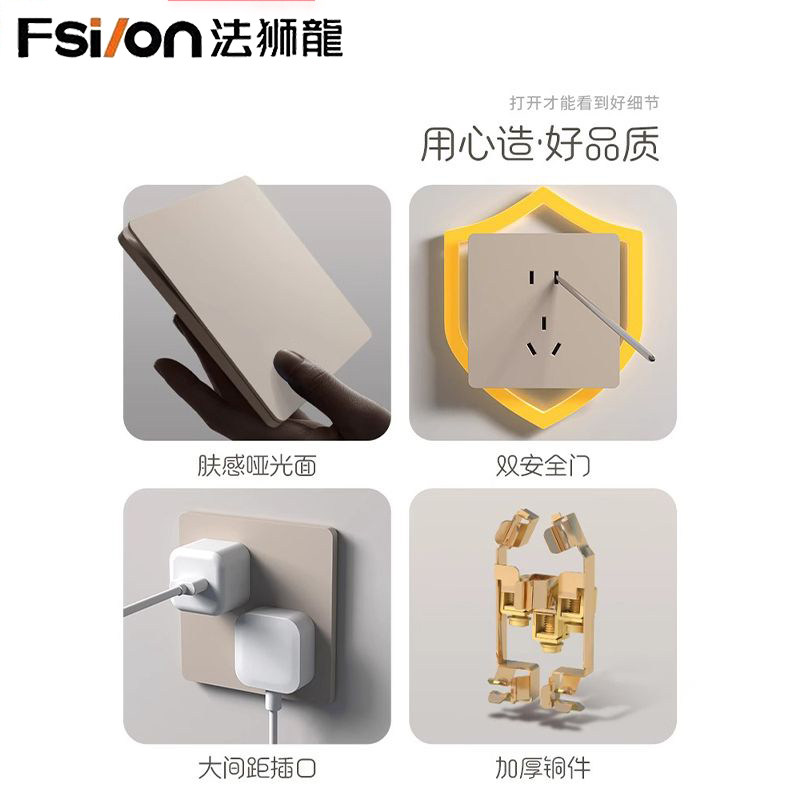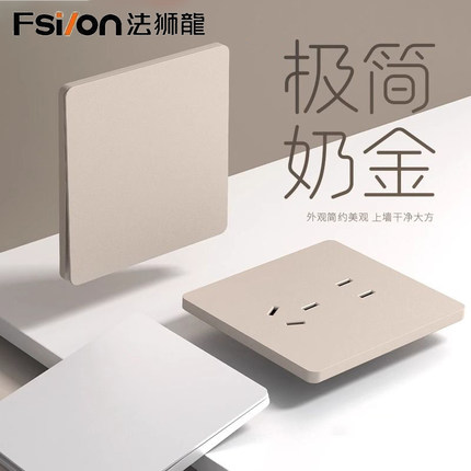 法狮龍超薄家用开关插座86暗装五孔插座金色哑光轻奢奶油风