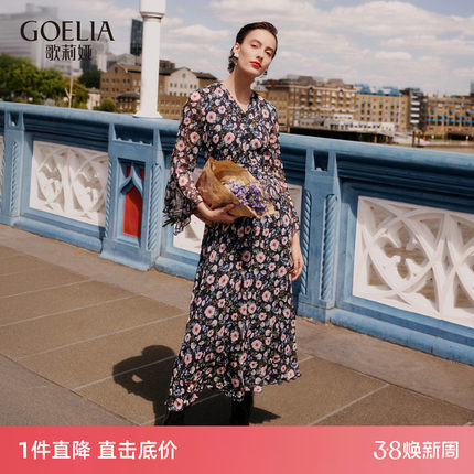 歌莉娅夏季绝美印花真丝连衣裙女