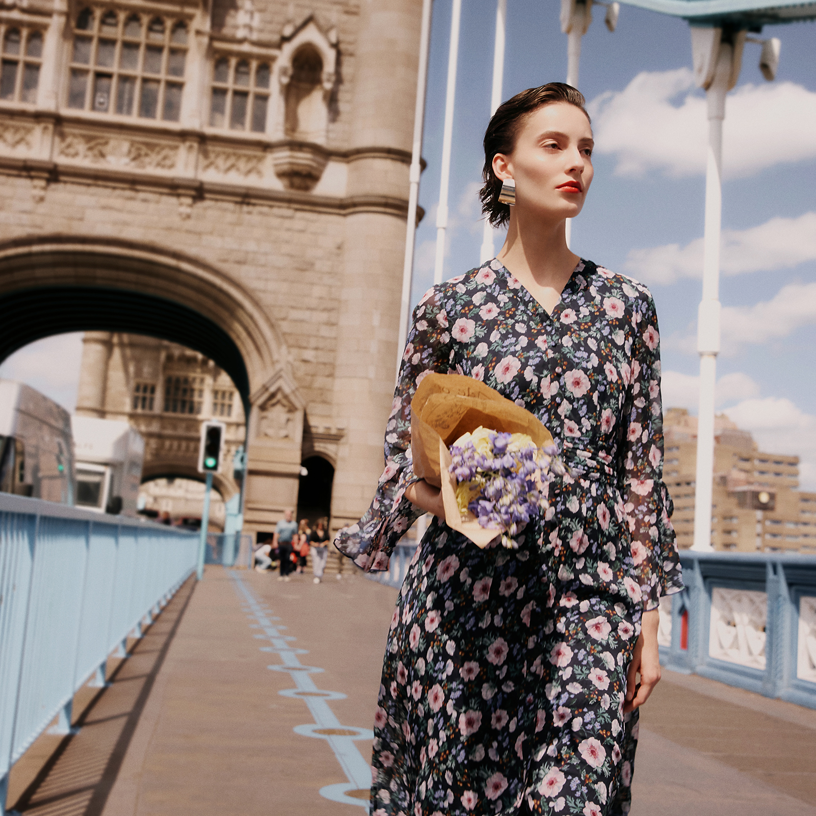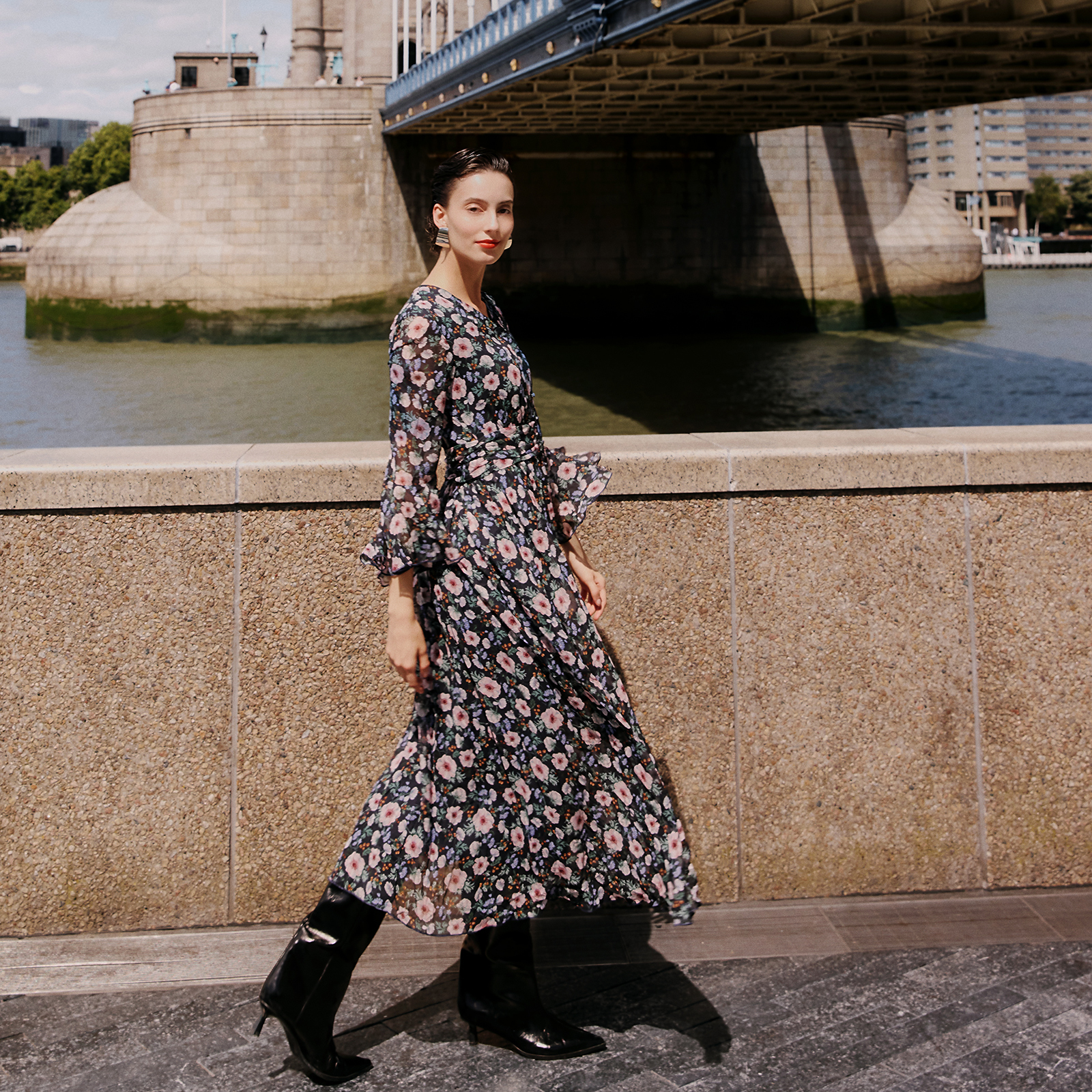 首降3折|歌莉娅真丝连衣裙女夏季设计感绝美好看桑蚕丝印花裙子