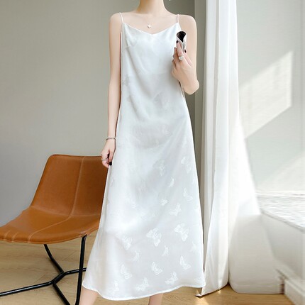 2025年新款法式缎面真丝吊带连衣裙女夏高级感醋酸提花裙显瘦长裙