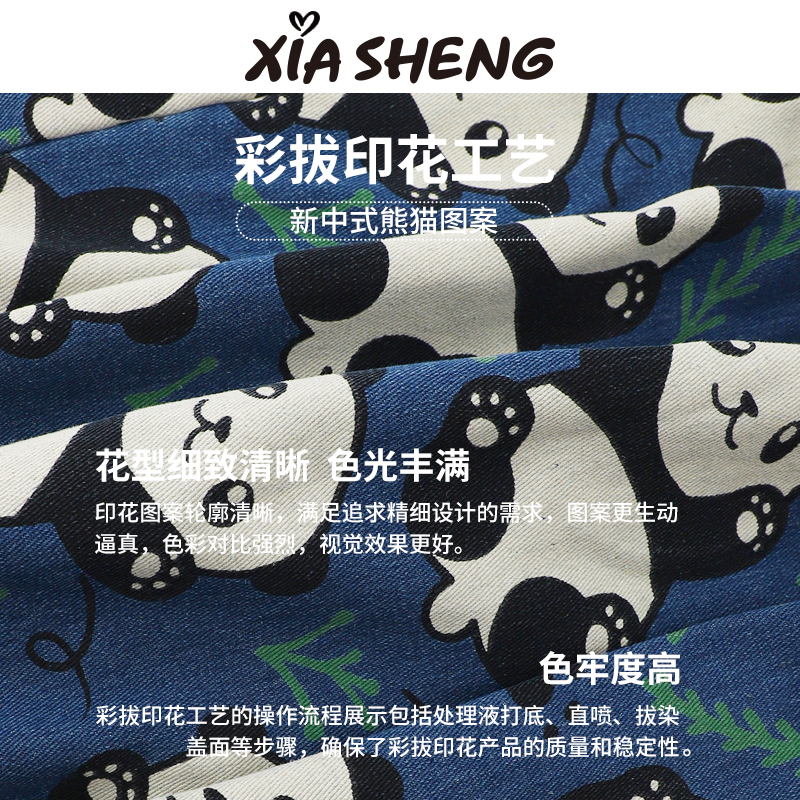 夏生长裤牛仔裤国潮熊猫印花裤子