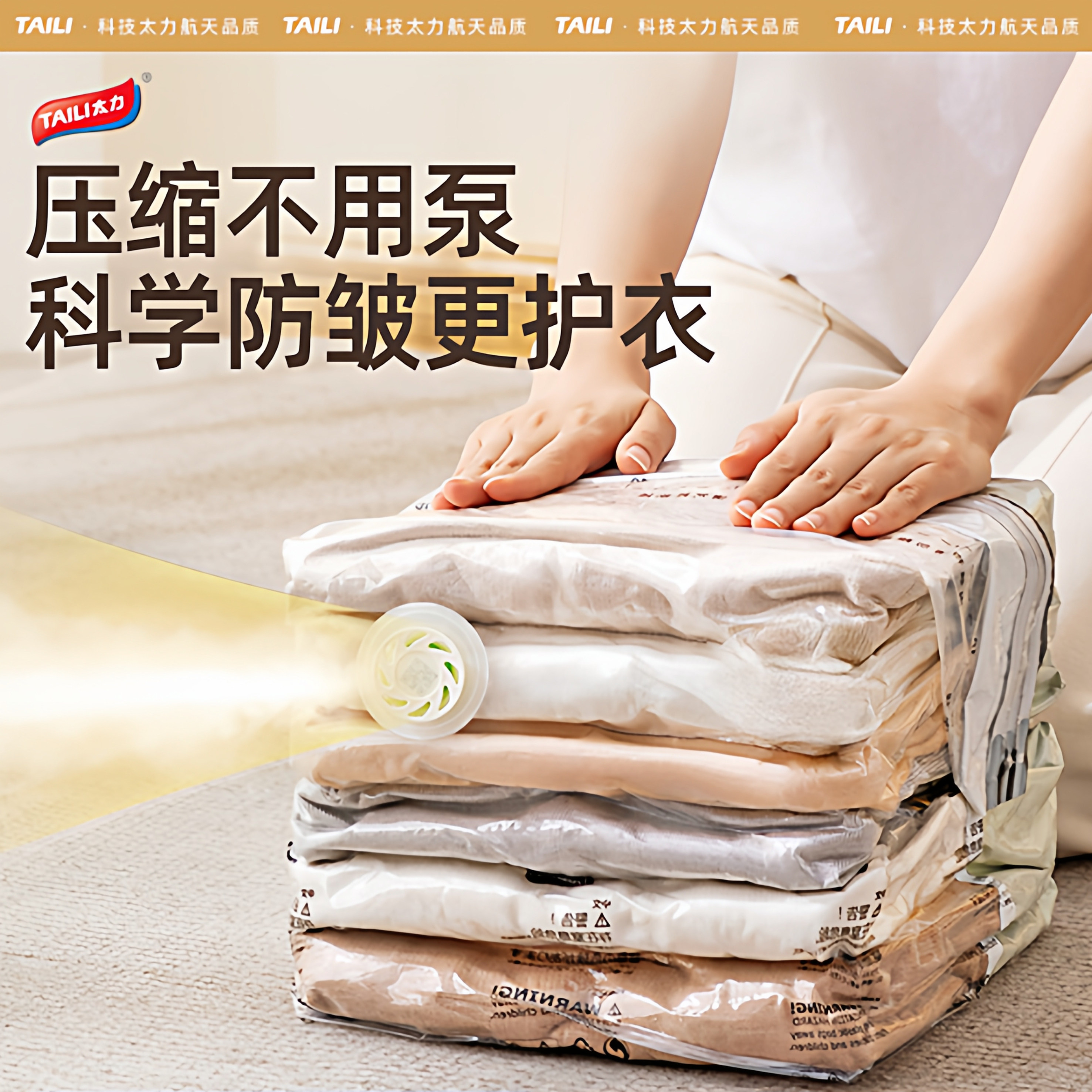 太力羽绒服压缩袋收纳袋旅行衣服衣物行李箱专用免抽气便携收纳包