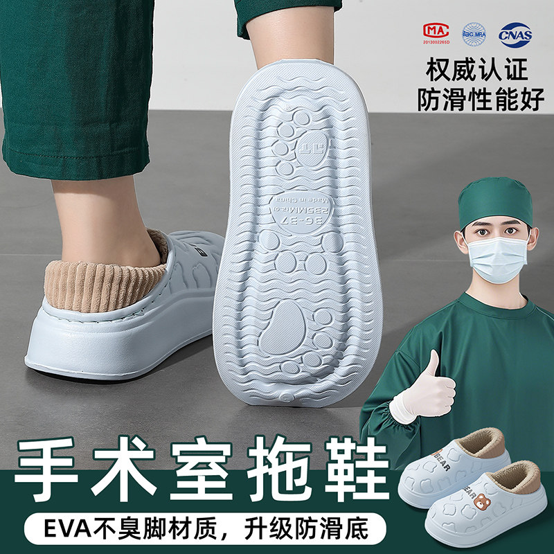 手术室拖鞋女医用棉拖鞋秋冬季2025新款室内防滑保暖厚底包跟棉鞋