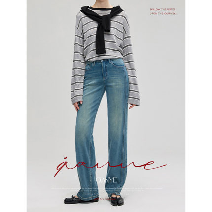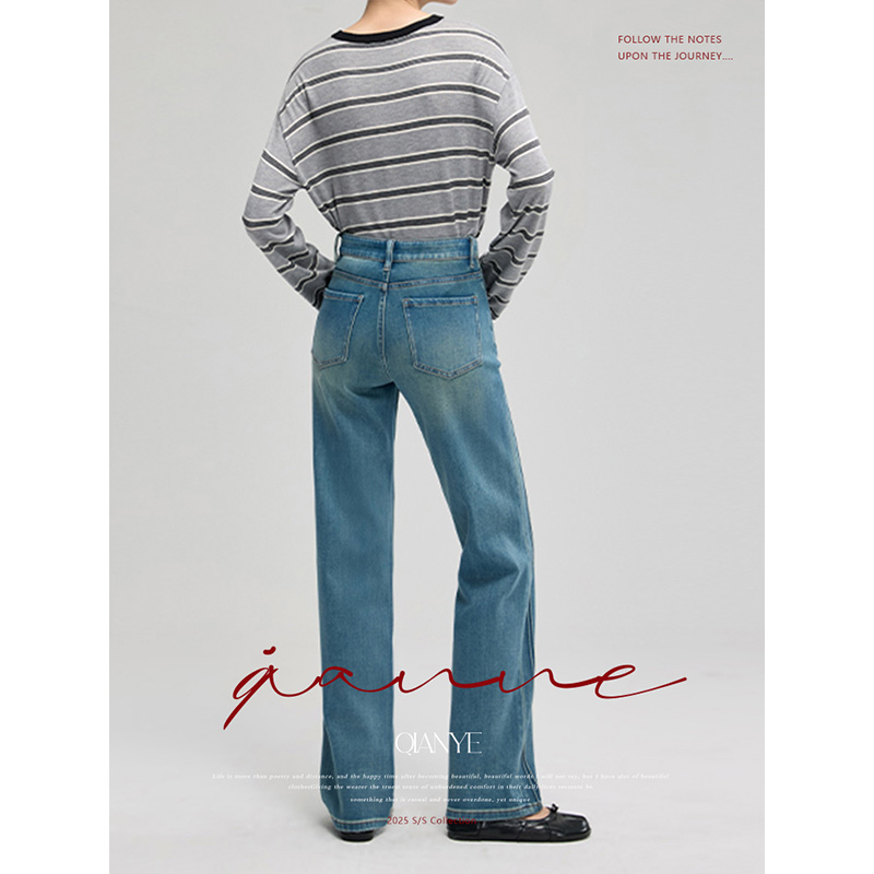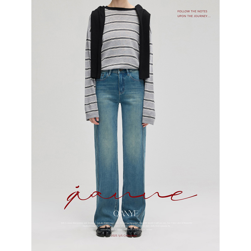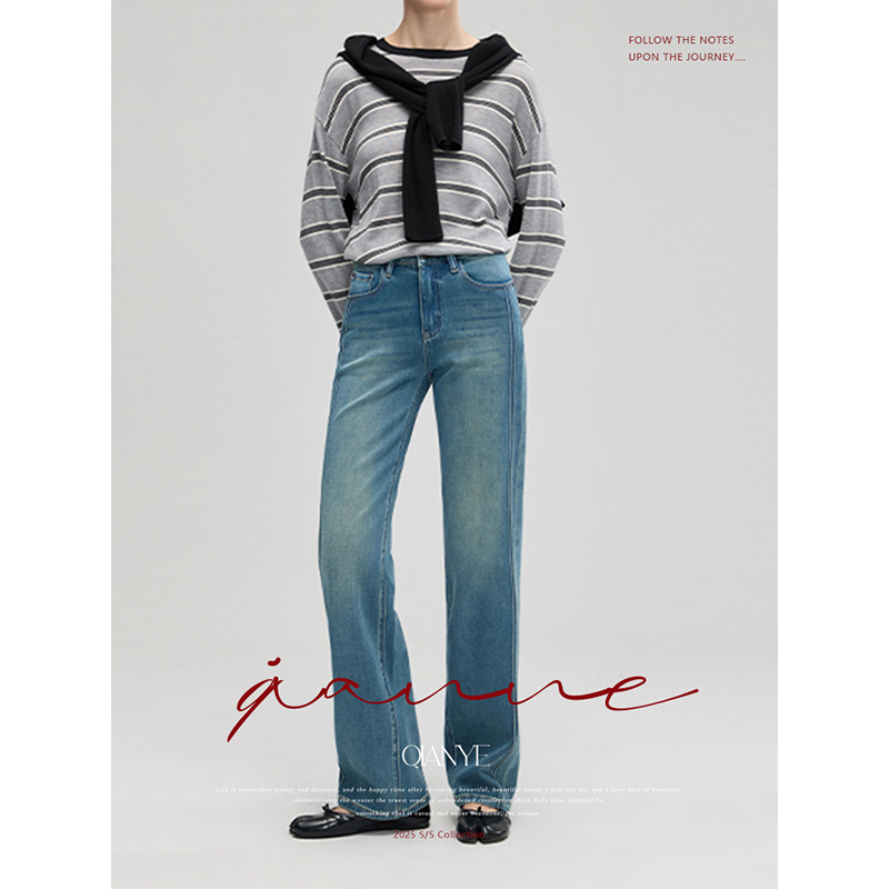 修身宽松直筒牛仔裤女2025新款秋季流行百搭遮肉小个子低腰阔腿裤