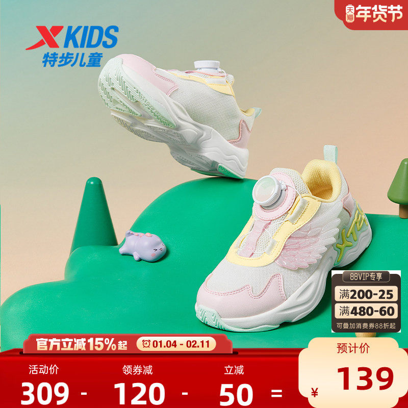 特步儿童鞋2026新款秋冬网面透气轻便女童鞋休闲女孩宝宝运动鞋子