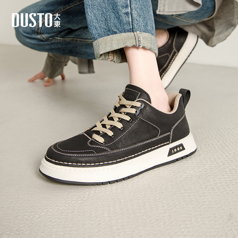 大东男鞋2025秋季新款舒适平底日常休闲板鞋圆头系带百搭男运动鞋