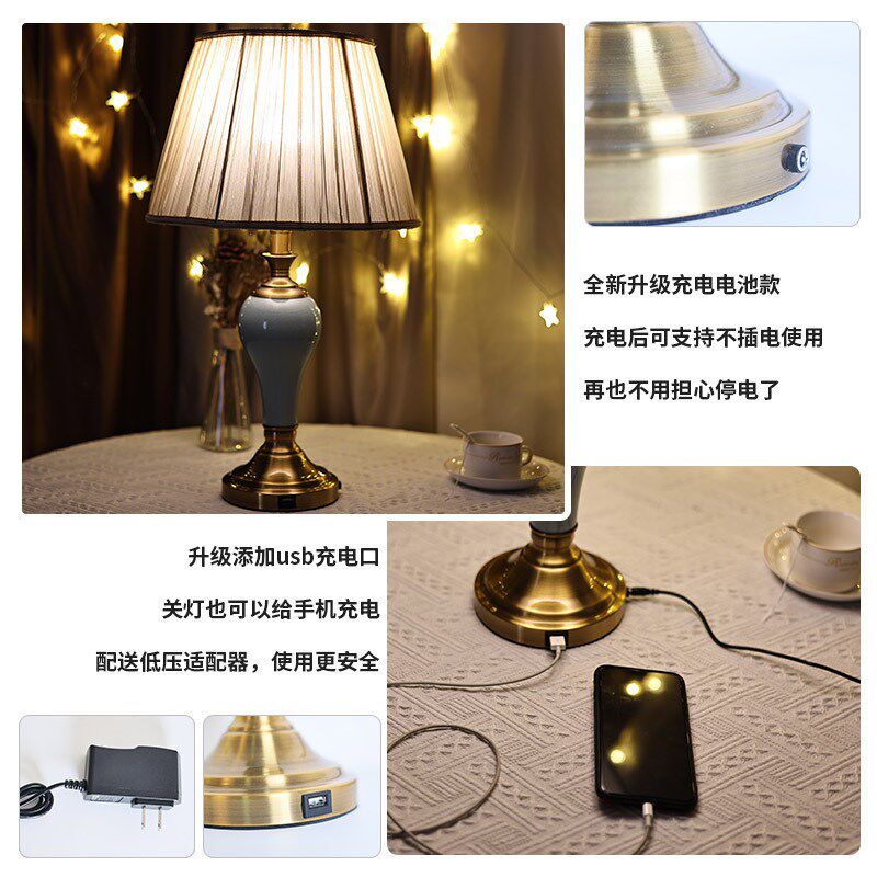 台灯卧室床头高档台灯中式陶瓷上档次床头柜新款led充电台灯