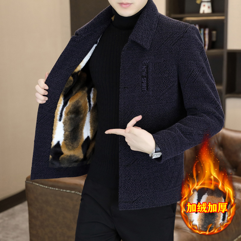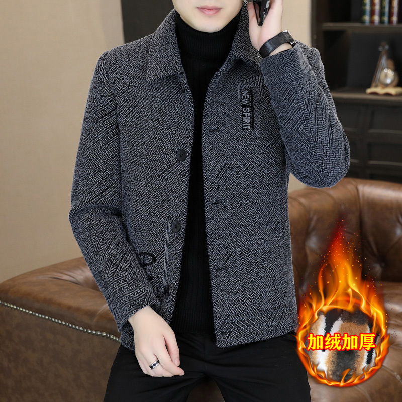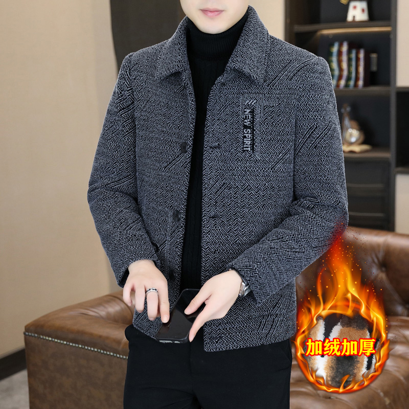 秋冬季毛呢夹克男短款青年高端帅气休闲加绒加厚呢子大衣外套冬装