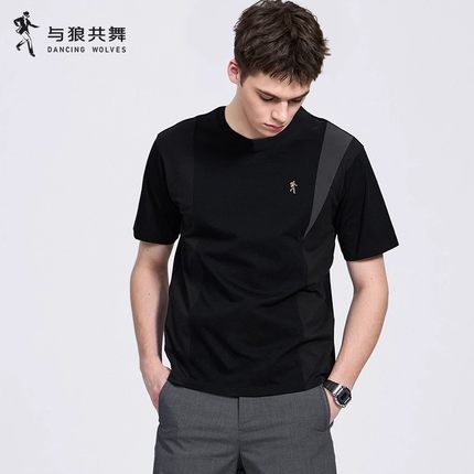 【冰爽索罗娜】与狼共舞圆领短袖T恤男2025夏季新款抗菌拼接上衣