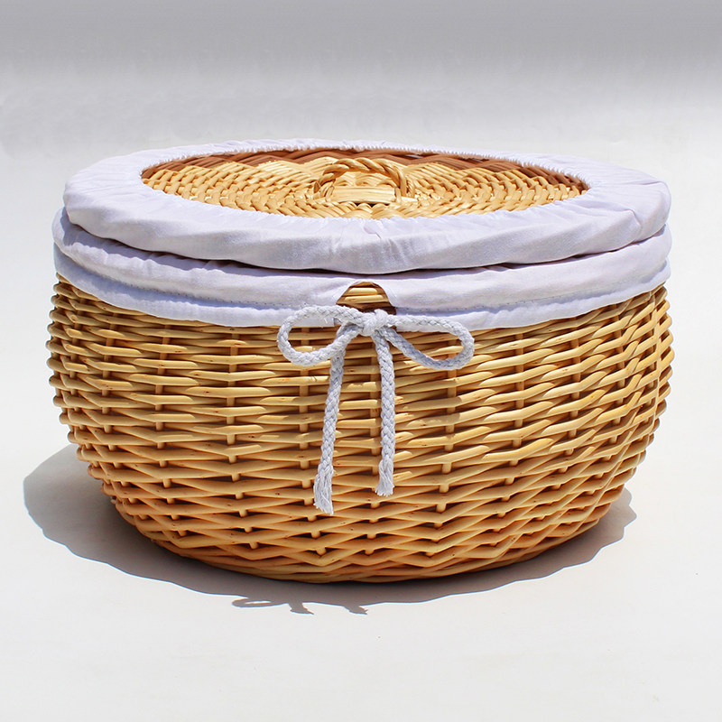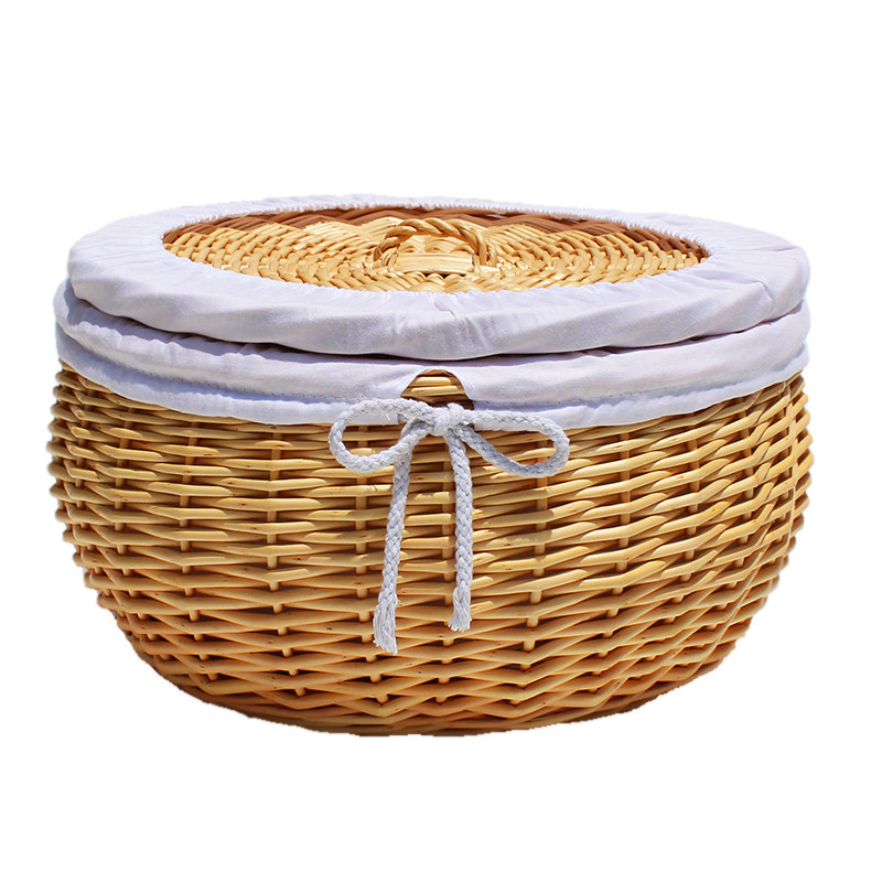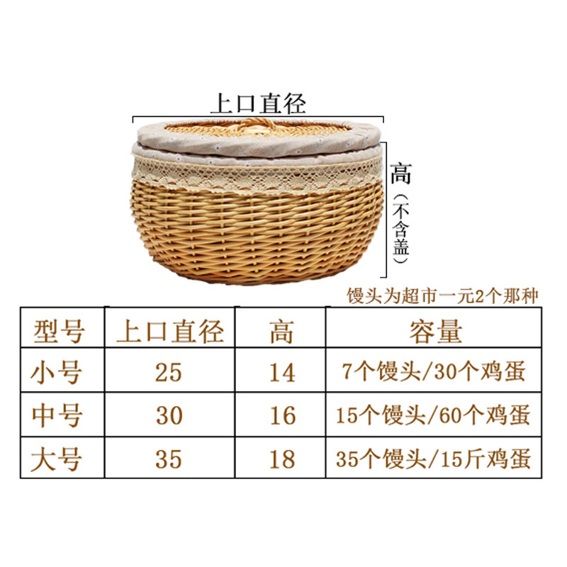 藤编馒头筐带盖保温柳编织面包篮子玩具零食鸡蛋篮装馍桌面收纳框