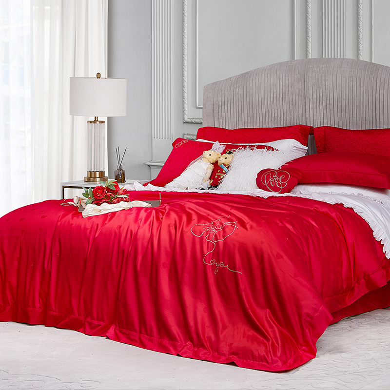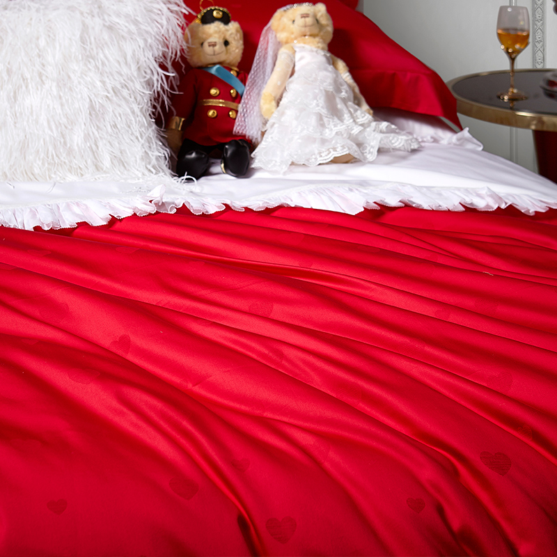 ROYALCOVER/罗卡芙欧式红色婚庆全棉贡缎纯棉床单四件套 一吻定情