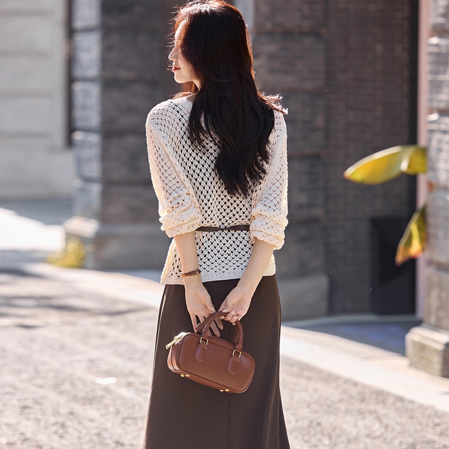 韩系镂空不规则针织罩衫女吊带连衣裙两件套套装女早秋高级感长裙