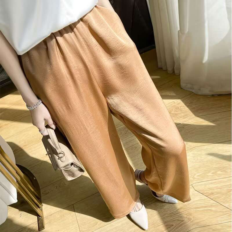 【断码撤柜桑蚕丝】真丝长裤夏阔腿裤宽松直筒裤缎面窄版阔腿裤女