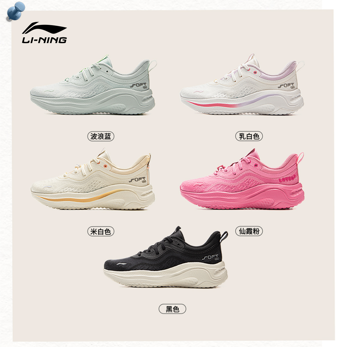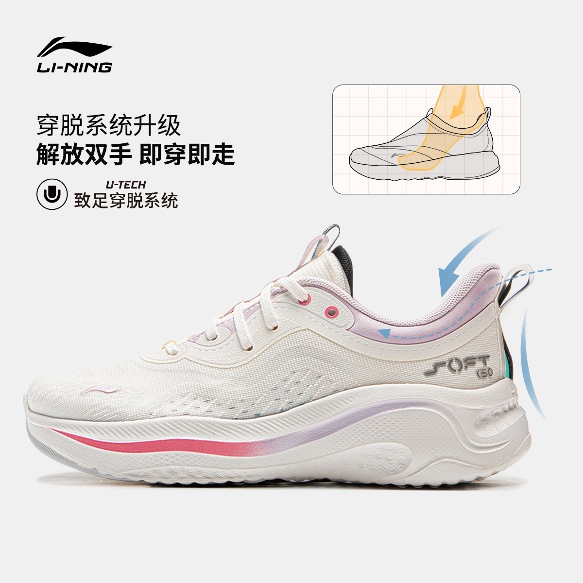 李宁SOFT GO 2 WMS丨休闲鞋女款2025秋季新款透气健步跑步运动鞋