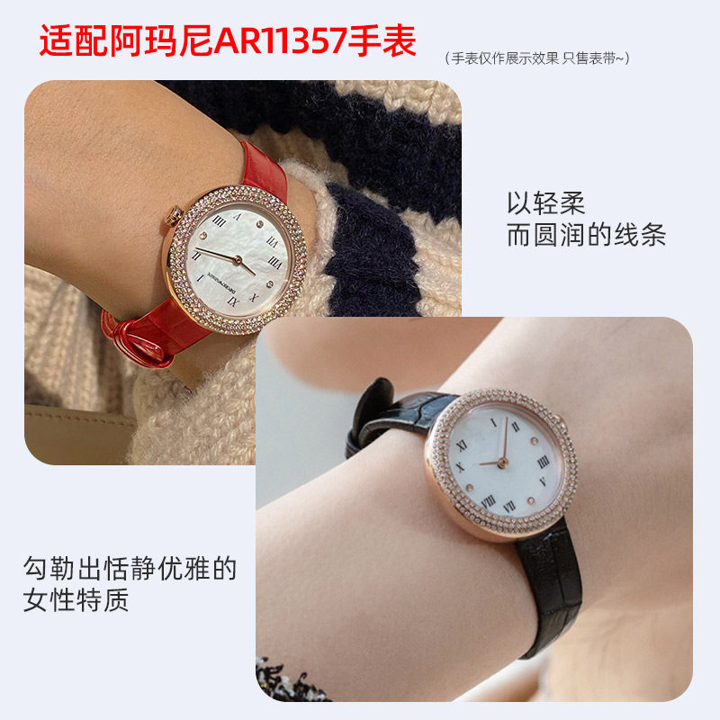 适配阿玛尼AR11357 11356表带ROSA满天星AR11419女甜甜圈真皮腕带
