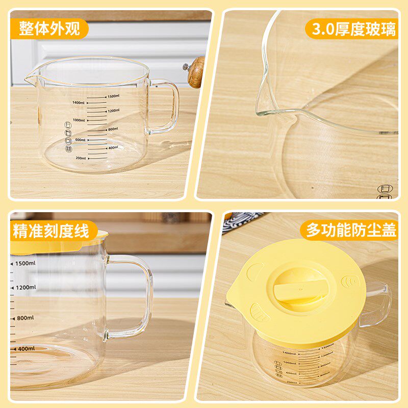 早餐牛奶碗刻度把手食用级玻璃大容量杯子明火烧微波炉加热耐高温