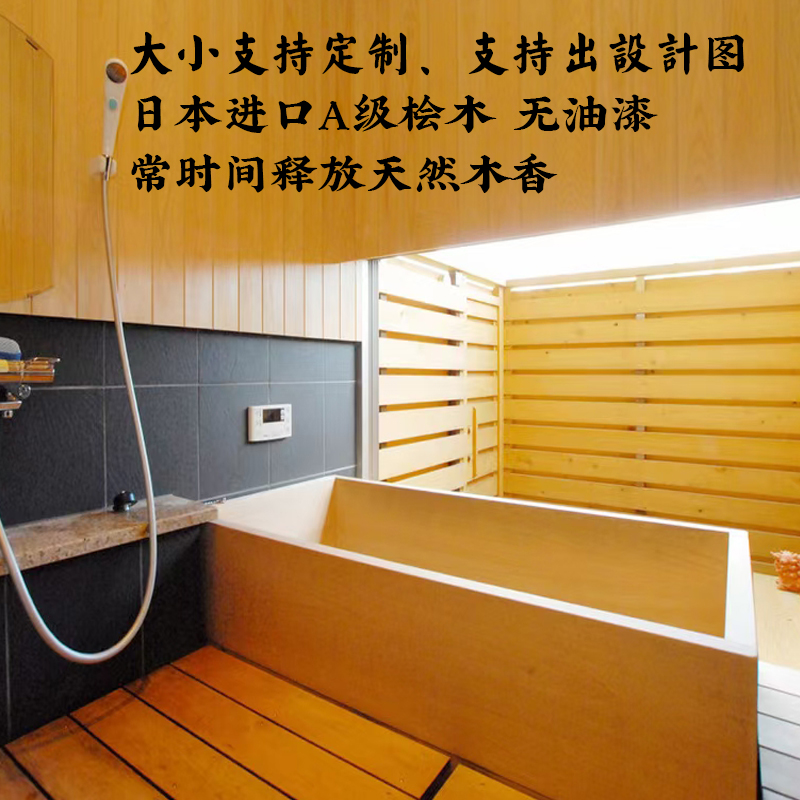 日本桧木浴缸方形无漆泡澡桶木桶美容院洗澡桶成人沐浴桶定制日式