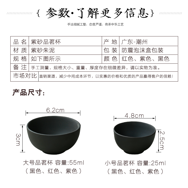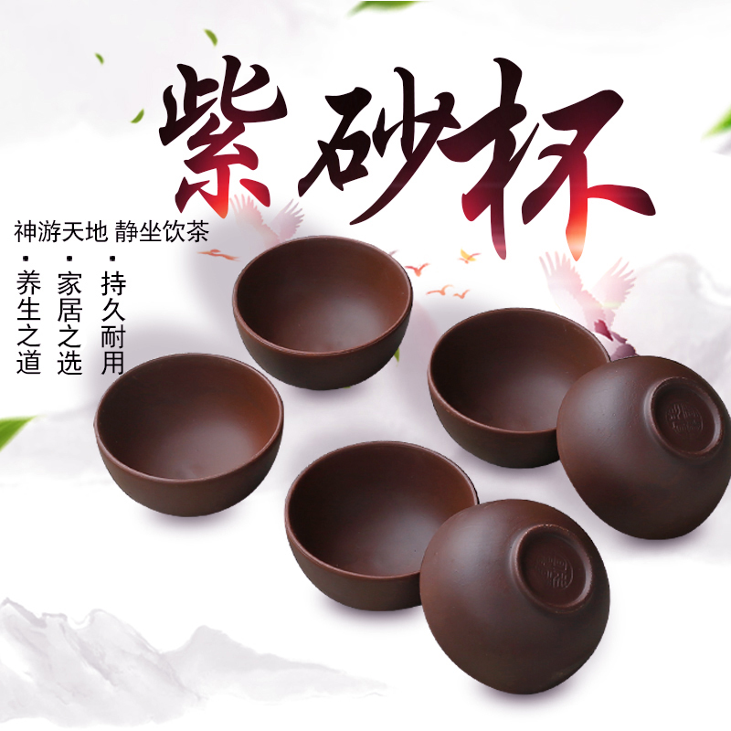 宜兴紫砂杯品茗功夫陶瓷杯大小号主人杯茶碗茶具套装直口杯子包邮