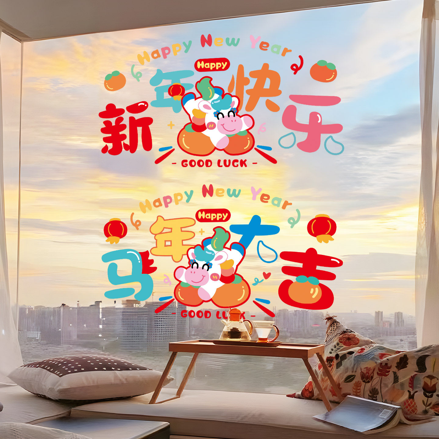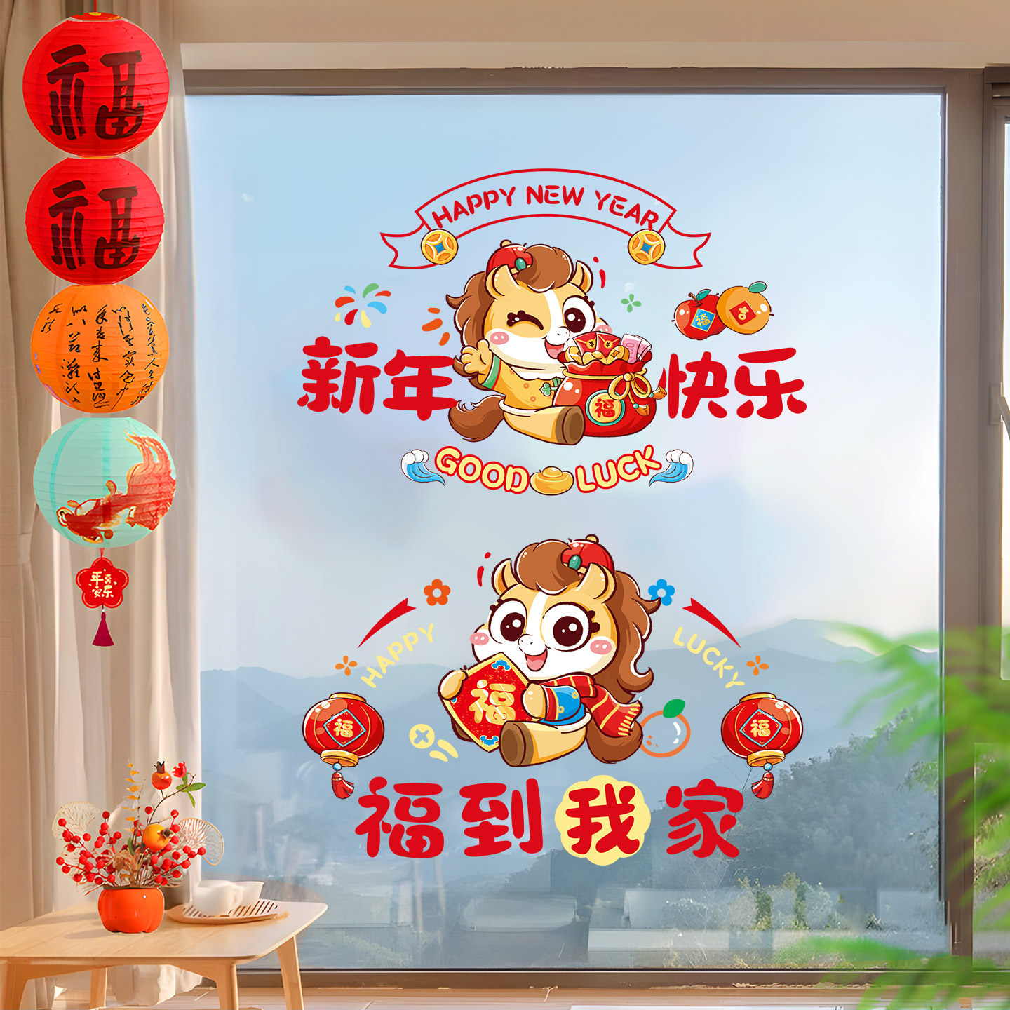 2026新款马年静电贴纸新年橱窗玻璃福字窗花春节过年氛围布置装饰