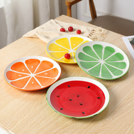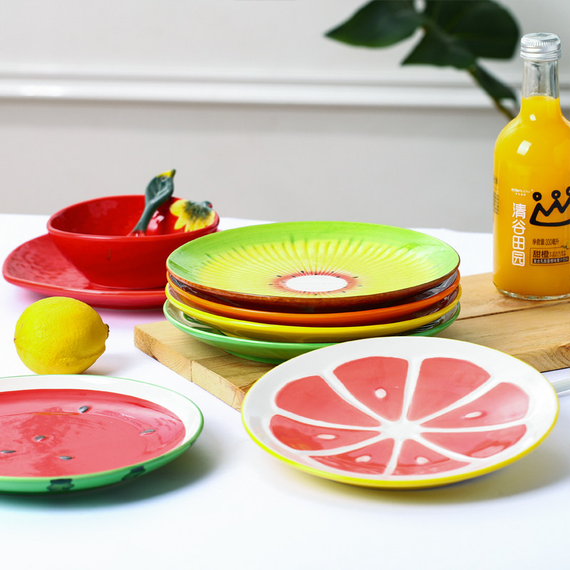 水果盘子家用陶瓷餐具可爱卡通创意手绘西瓜盘个性8英寸圆形碟子