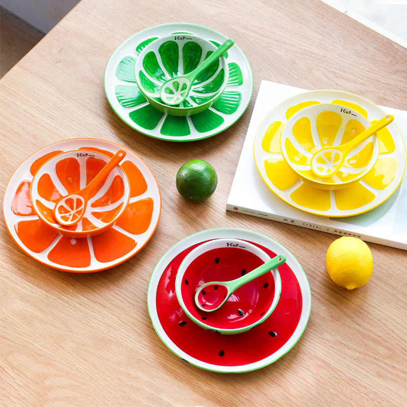 可爱创意手绘水果圆形陶瓷餐具