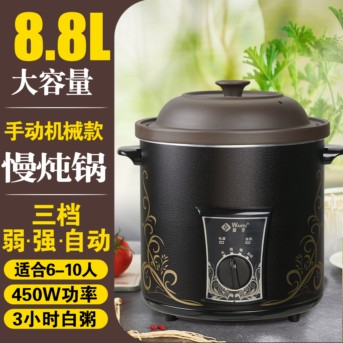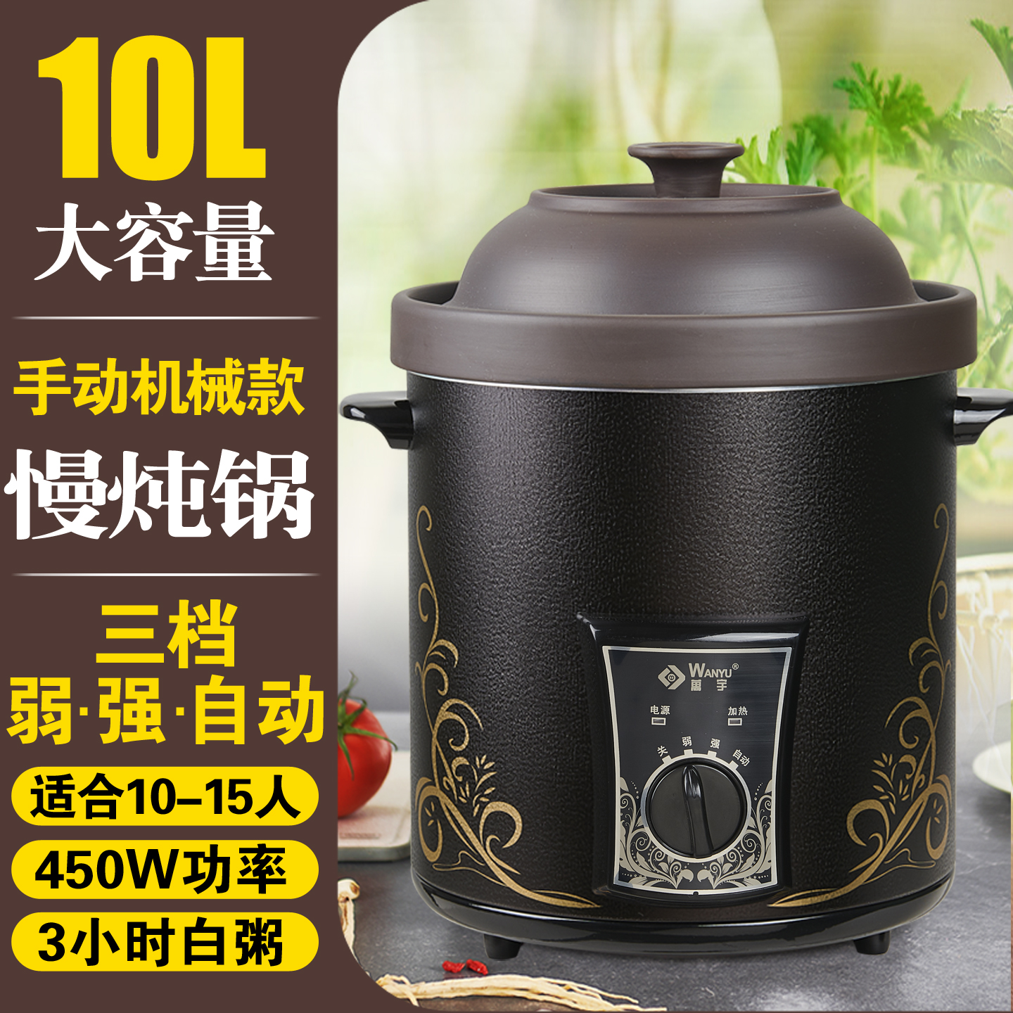 万宇商用电炖锅大容量电砂锅紫砂锅煮粥煲汤锅家用不锈钢电汤锅