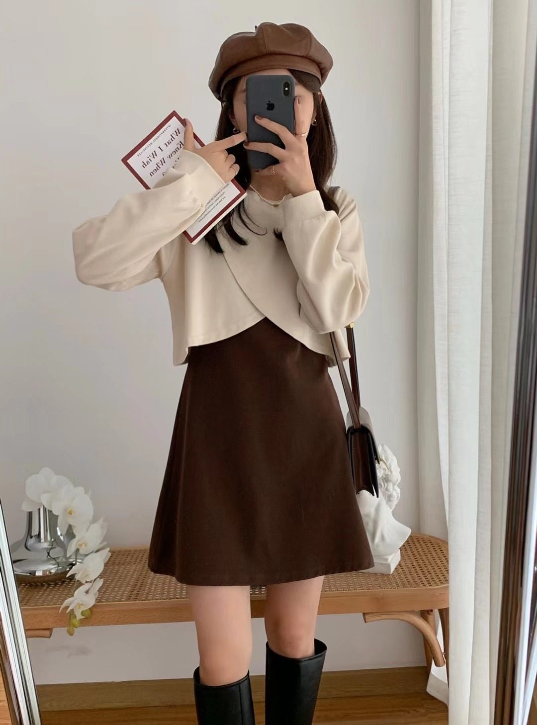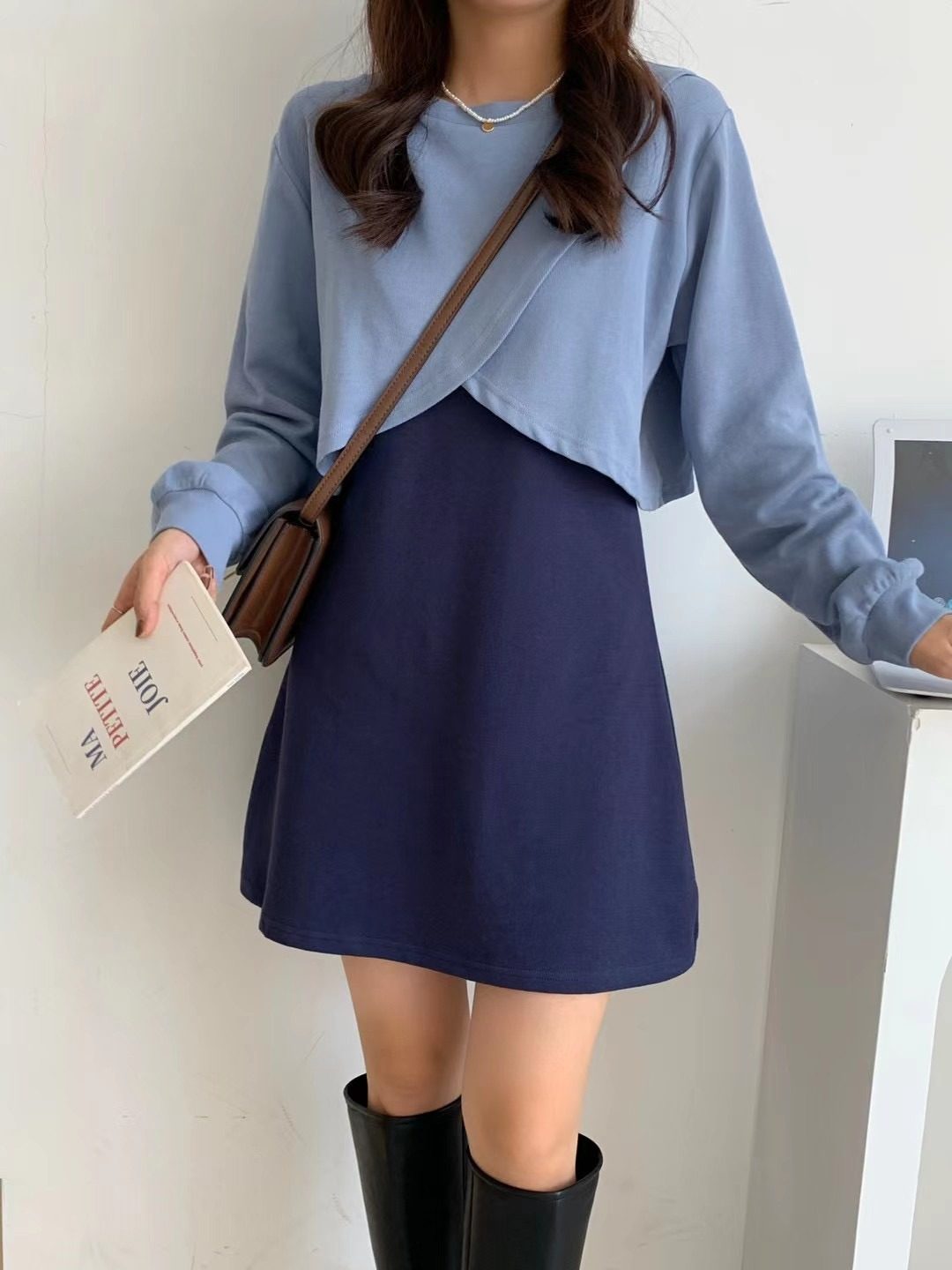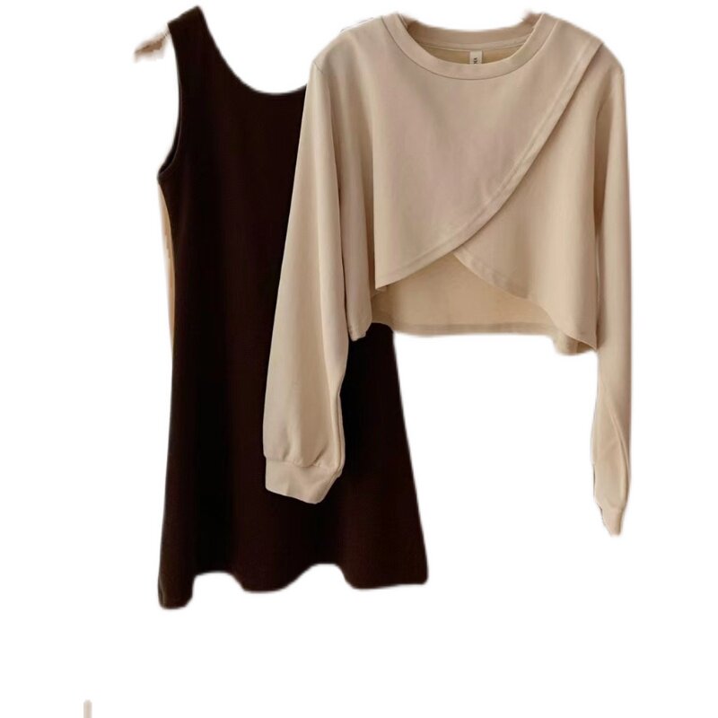 轻熟风洋气复古套装女春秋新款宽松长袖罩衫洋气甜美连衣裙两件套