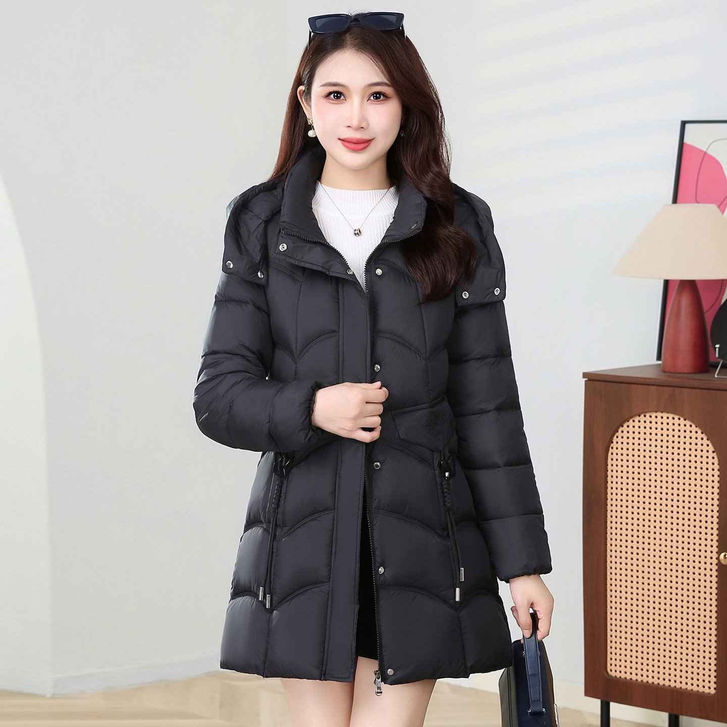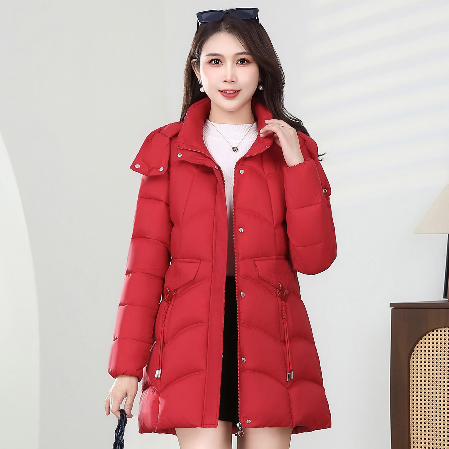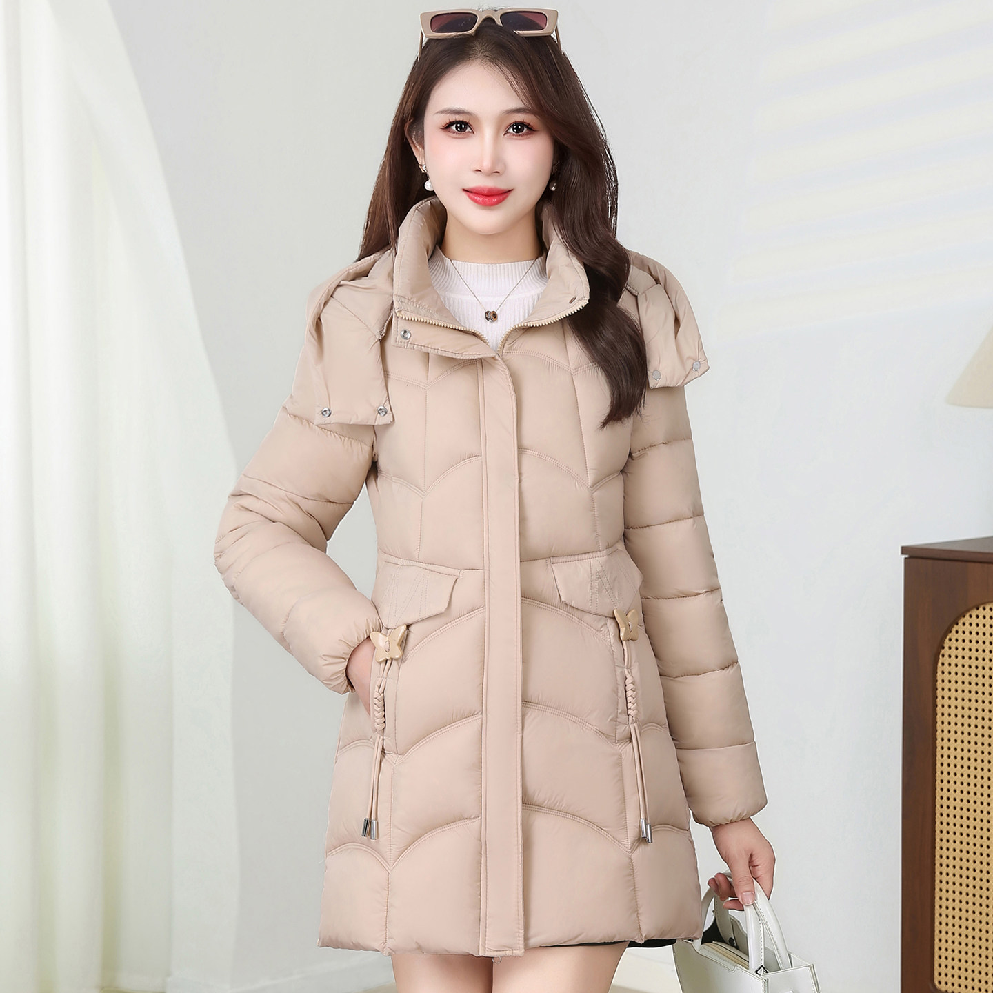 新款棉服女中长款冬季洋气修身收腰显瘦棉袄加厚棉衣可拆卸帽外套