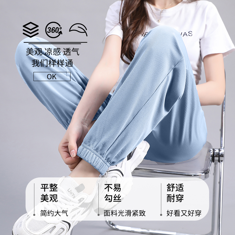 KWV真维斯黑色夏季女裤子2025新款束脚直筒凉感休闲裤宽松慵懒风