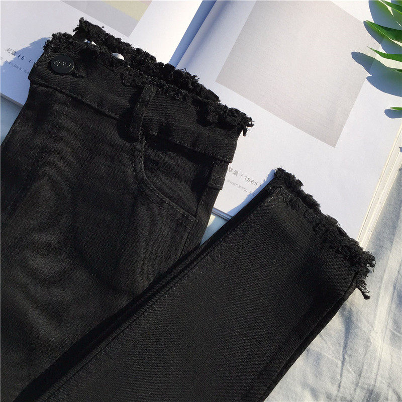 2021秋冬新款女装毛边加绒打底裤女外穿薄绒不起丝黑色小脚裤高腰