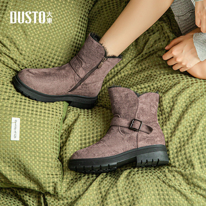 大东dd雪地靴女2025冬季新款粗跟加绒加厚棉鞋保暖时尚大气女靴子