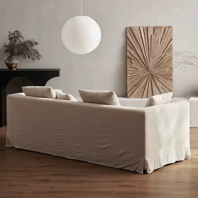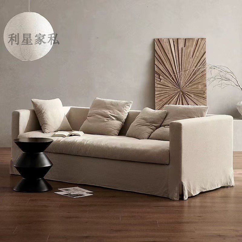 日式极简侘寂奶油风亚麻布艺沙发大小户型客厅民宿酒店可拆洗三人