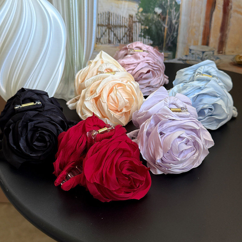 【手卷玫瑰抓夹】丹麦caro立体风格布艺抓夹大号后脑勺盘发夹春夏