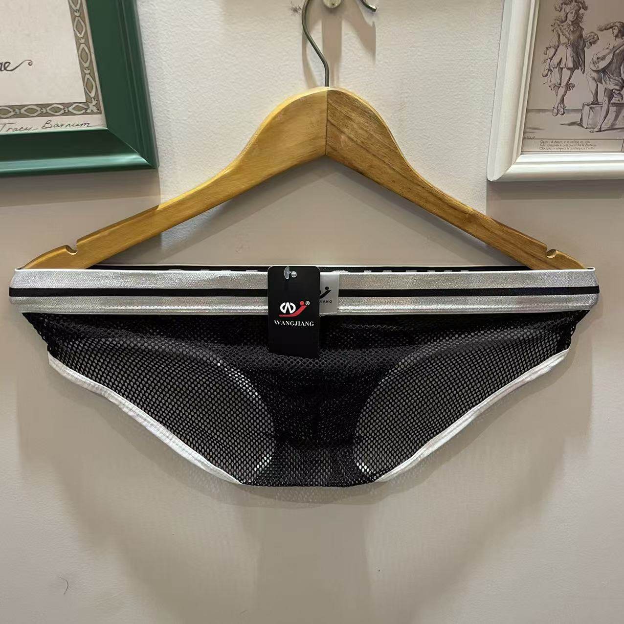 性感低腰男士三角内裤冰丝透气网孔黑色透明底裤衩青年夏季薄款