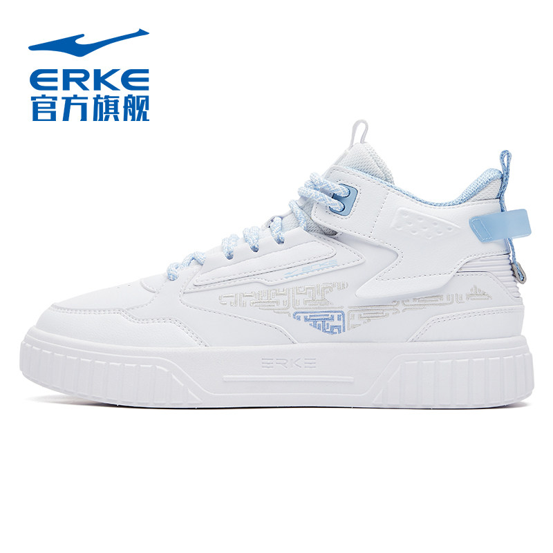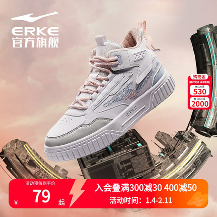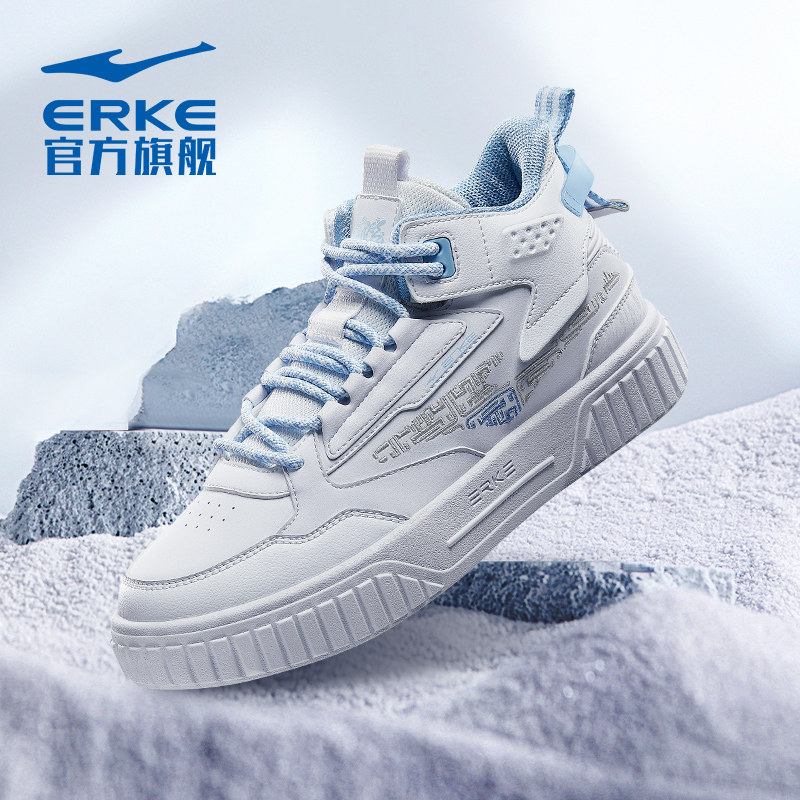 鸿星尔克高帮板鞋女鞋加绒棉鞋征服春秋新款厚底休闲保暖运动鞋子