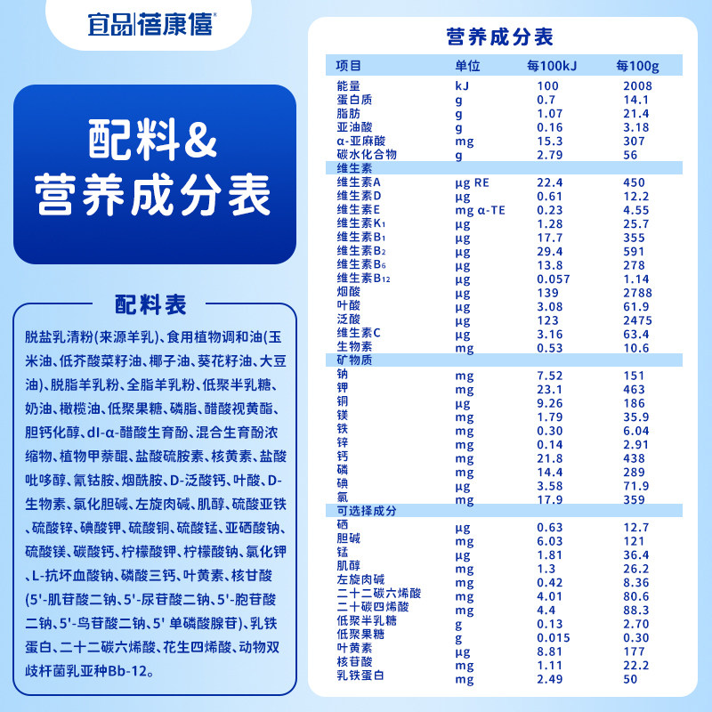 宜品蓓康僖国产婴幼儿配方羊奶粉3段180g*1罐试喝装1-3岁宝宝奶粉