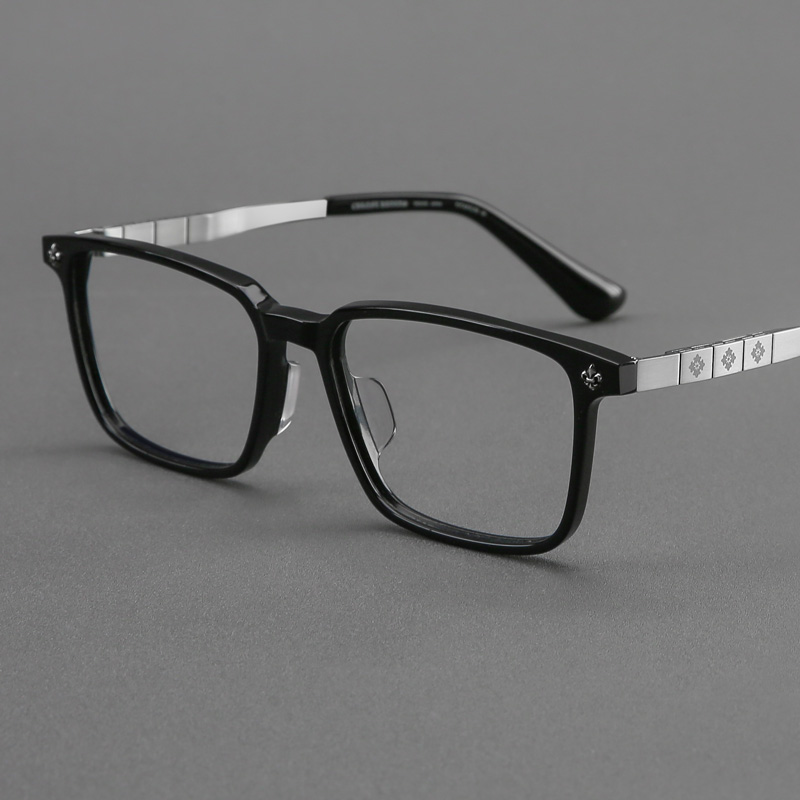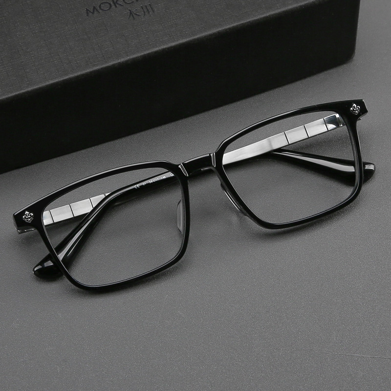 木川150mm轻奢钛架近视眼镜男士黑色板材方框大脸眼睛架可配度数